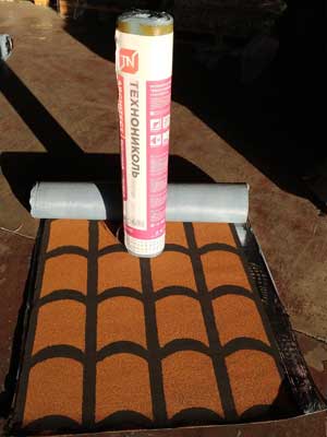 Αυτοκόλλητο ασφαλτόπανο που παράγεται από ελαστομερή άσφαλτο (SBS) και έχει άνω επικάλυψη έγχρωμη ψηφίδα με σχέδιο ασφαλτικού κεραμιδιού και κάτω επικάλυψη σιλικονούχο πολυαιθυλένιο.
